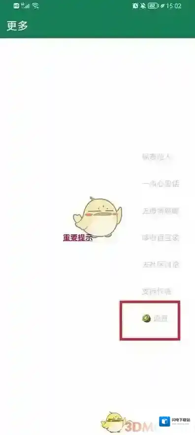 3、然后在出现的选择项中,选择最下方的设置,进入到设置界面;