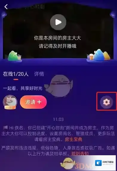 1、打开腾讯软件,来到创建好的房间,点击设置。