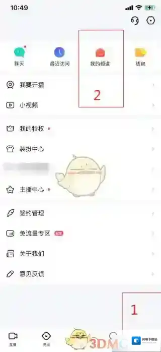 1、打开YY手机版后进入主页面,点击右下方“个人中心”,再点击上方“我的频道“。