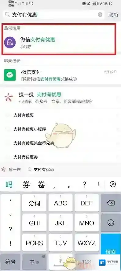 1、首先需要搜索微信支付有优惠,进入到该小程序之中;