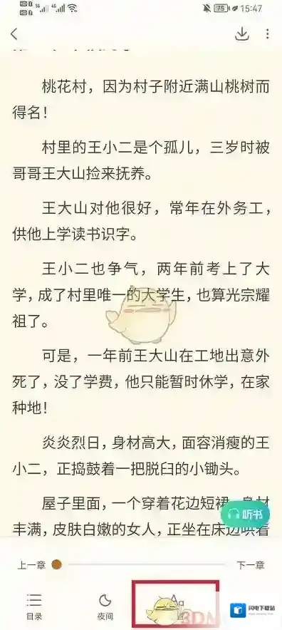 2、在其内容界面,我们点击屏幕中间位置,就可以调出更多设置功能,然后点击下方的设置进入到设置界面;