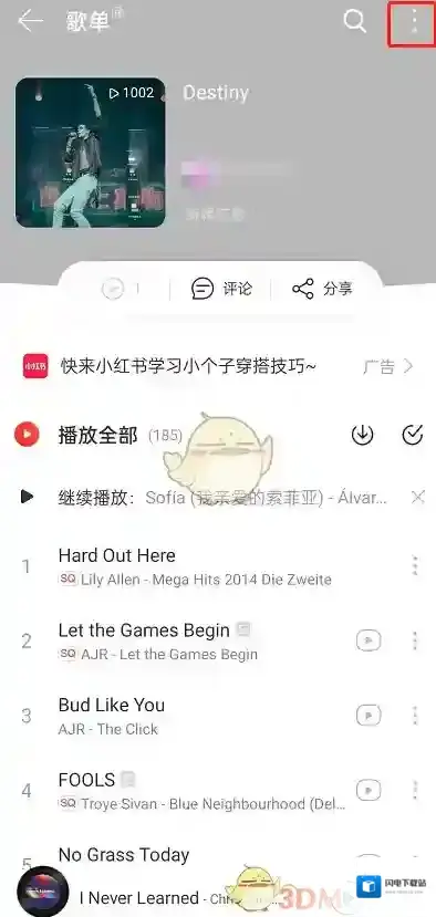 2、进入歌单后,点击右上角三个点。