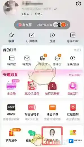1、打开淘宝app,在“我的淘宝”界面点击“淘宝人生”打开