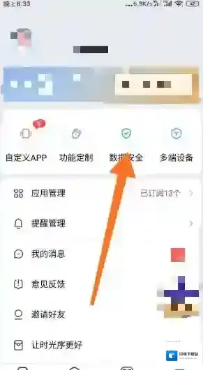 2、点击打开数据安全按钮。