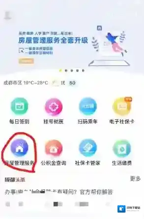 1、在天府市民云app点击页面中部的“房屋管理服务”。