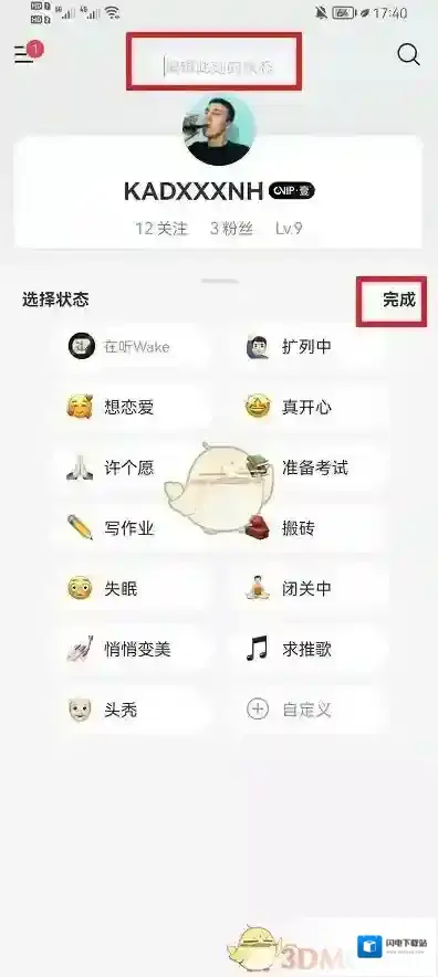 3、删除全部文字,点击完成,即可关闭状态显示。
