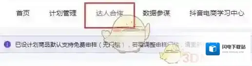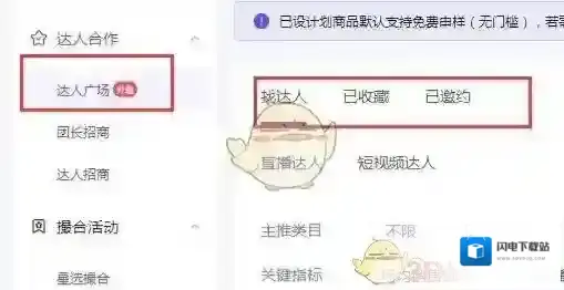 2、开通完成后,进入精选联盟,在上方找到“达人合作”