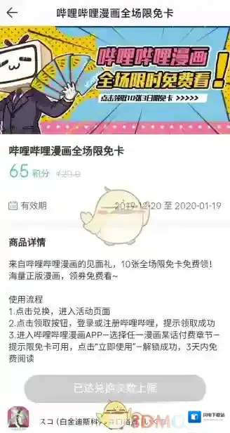 哔哩哔哩漫画限免卡通过参加各种限时活动获得。qq音乐等平台有限时活动,用户在活动界面可以使用积分兑换获得,耐心等待活动开启哦。