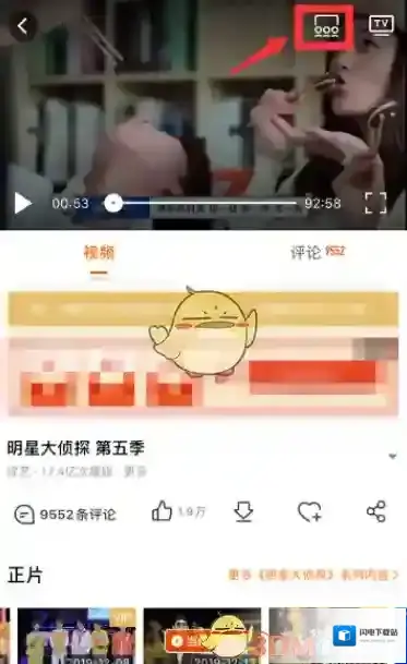 2、点击视频右上角放映室的图标,如果是在全屏模式也是一样的,视频上方有个放映室图标