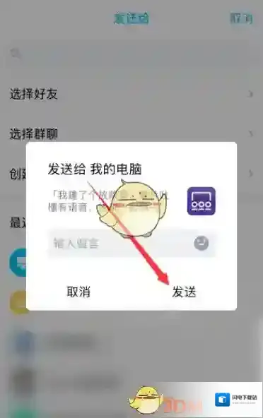 6、随后会调起QQ,选择一个QQ好友后,点击发送即可,好友可以根据你发送的进入到你的放映室一起看视频。