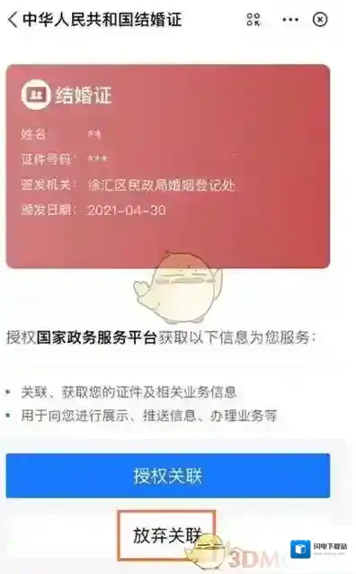 2、进入国家政务服务平台之后,然后就可以看到结婚证了,再点击下面的放弃关联即可。