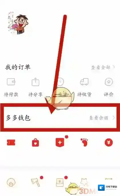 1、打开拼多多,点击右下角个人中心,然后点击多多钱包进入