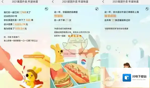 3、通过年度账单看到自己加入美团的天数,过去一年下单数量、花费金额、下单最多的店铺等等;