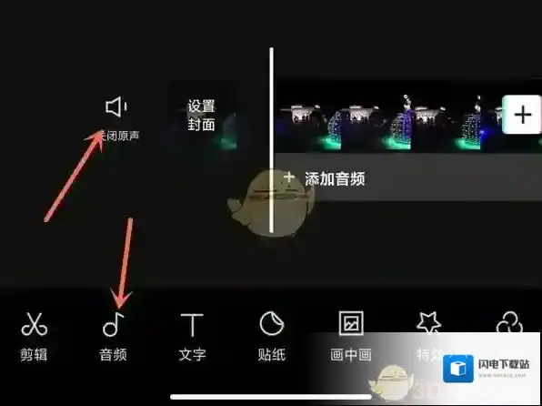 3、点击“关闭原声”,再点击“音频”。