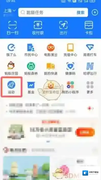 1、打开支付宝首页,然后我们点击首页中的运动。