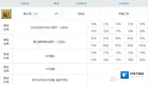评析:原本看板娘阿尔托莉雅的直感技能只能获得星星,由于这点一直被嫌弃为鸡肋,原本以为到关服也不会改的辣鸡技能,结果惊喜的给了自充技能强化本,升到满级10会有增加30%NP的技能,配合呆毛原本宝具蓄力增加NP的效果,更加容易实现宝具的连发,这个技能使呆毛一下子稳固住顶尖剑阶光炮的位置,可以说是官方的良心发现。