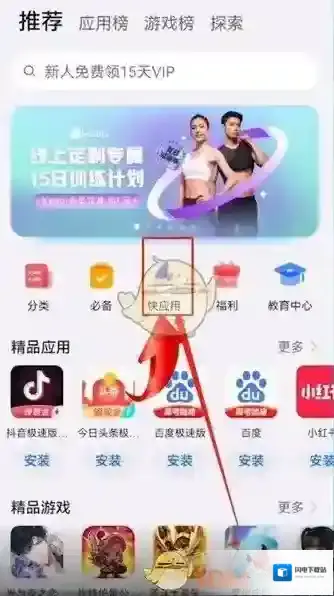 1、打开华为应用商店选择进入幻灯片下方的快应用。