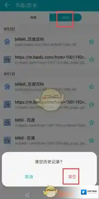 2、在历史页签,点击清空,所有浏览记录将被清除。