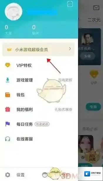 1、先把小米“游戏中心”升级到最新版,超级会员只有新版才会显示,升级完之后,我们打开侧边栏,会看到如下图所示的界面;