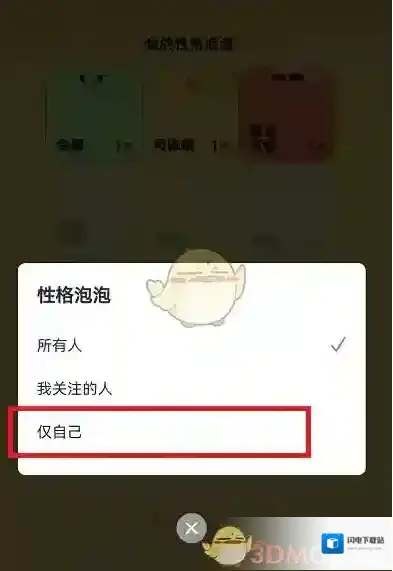 4、勾选仅自己返回,这样其他好友就看不到你的性格泡泡了。