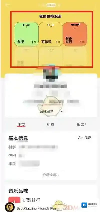 1、网易云音乐页面点击我的进入,个人主页,在个人主页下拉可看到性格泡泡。