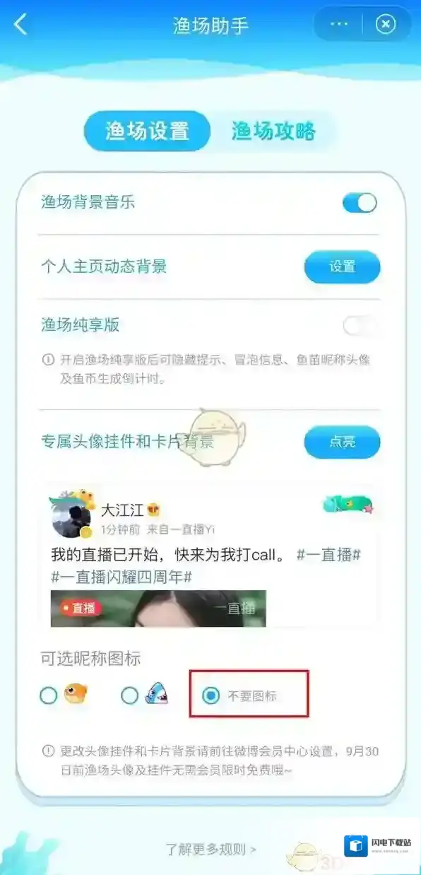 微博渔场不能关闭,但可以不展示渔场挂件。本文为大家介绍不展示渔场挂件的方法,具体操作步骤如下: