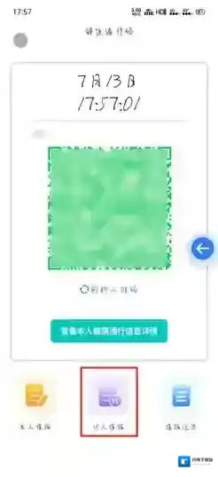 5、进入健康码展示页面后,展示的是我们的健康码,我们需要点击代人填报进入绑定其他用户的信息页面;