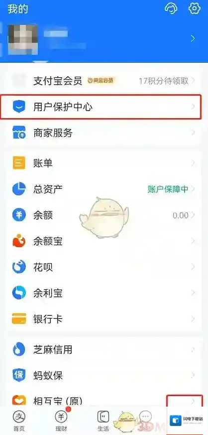 1、在支付宝我的页面点击“用户保护中心”。
