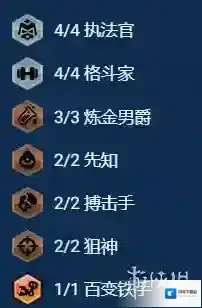 4执法官、4格斗家、3炼金男爵、2先知、2搏击手、2狙神、1百变铁手