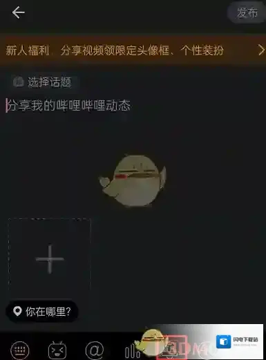1、打开哔哩哔哩,点击下方动态,再点击右上方编辑图标。