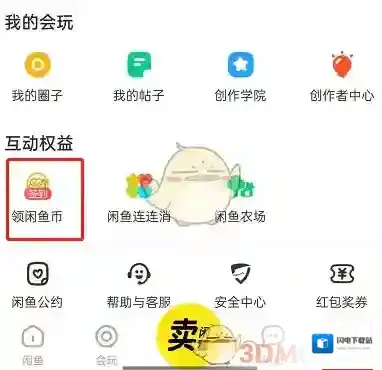1、打开闲鱼,点击我的,找到进入领闲鱼币。