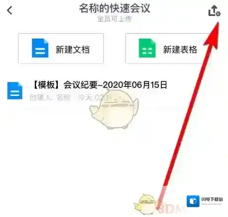 3、此时我们可以选择想要上传的文档或者表格,如果想要更改权限可以点击右上角箭头所指位置的图标。