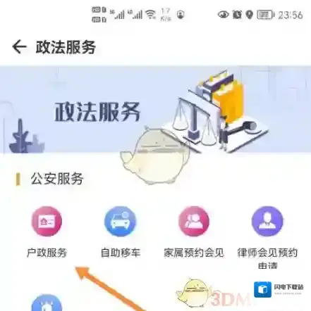 2、接着在政法服务中点击户政服务进入。