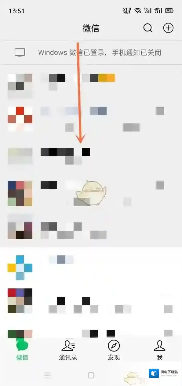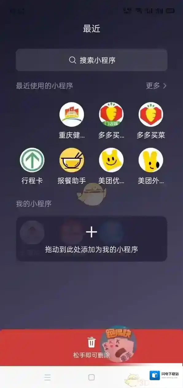 1、打开微信后,将微信界面往下拉打开小程序入口。