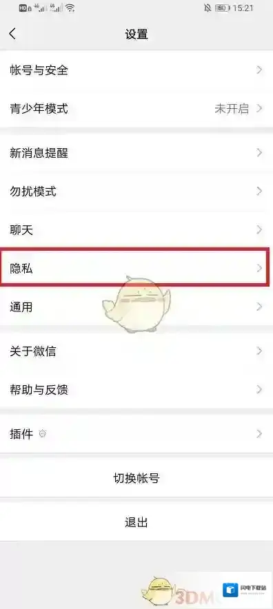 3、在此设置功能中,点击其中的隐私就可以进行设置;