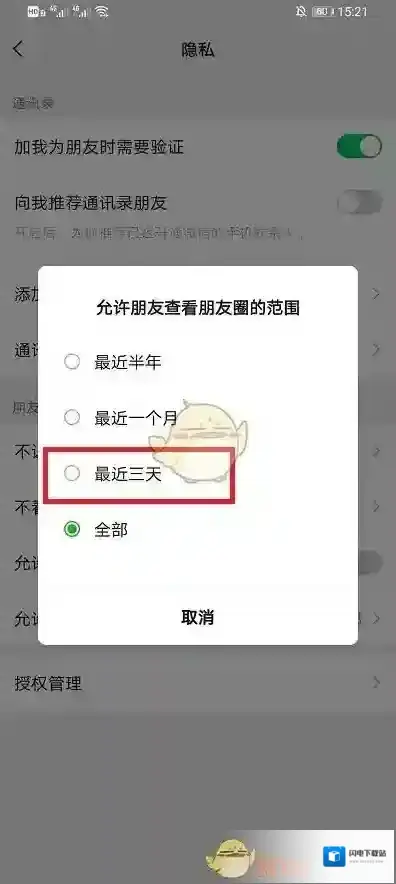 4、想要设置具体时间,就需要打开允许朋友查看朋友圈的范围;