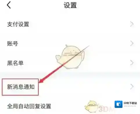 2、点击图标后,在“设置”里点击“新消息通知”。