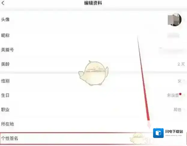 2、点击编辑资料后,在最下面一排就是个性签名。