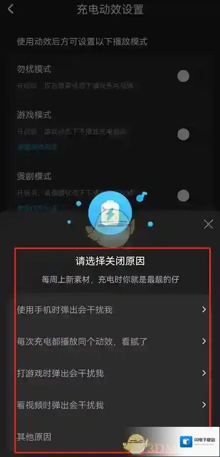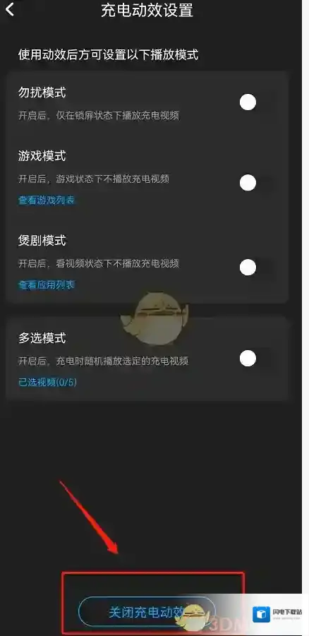 4、在这点击“关闭充电动效”。