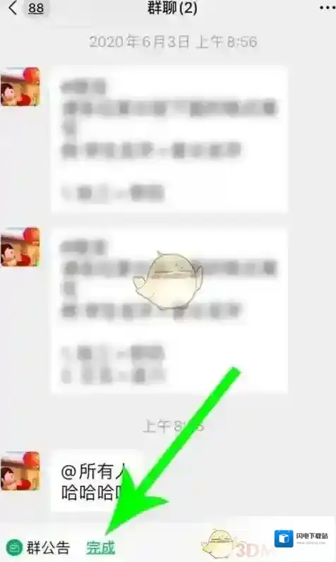 3、打开微信群聊窗口,然后点击群公告右侧的“完成”按钮。