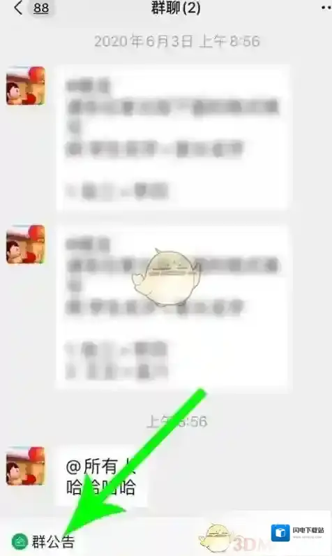2、打开群公告以后查看公告内容,然后完成公告任务,接着点击“返回”图标。