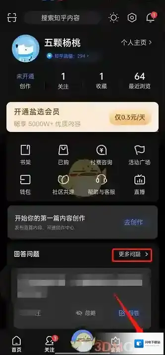 1、打开知乎,点击我的,然后在回答问题下,点击更多问题。