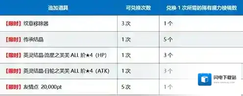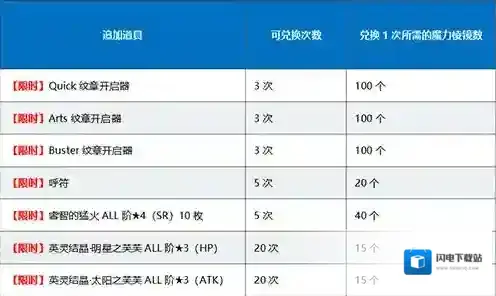 ※「魔力棱镜交换」中原有的「Quick纹章开启器」、「Arts纹章开启器」、「Buster纹章开启器」的可兑换次数将从2019年10月1日(周二)0:00起变更为1次。