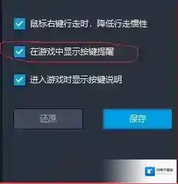 4、按键设置完成后,可以取消勾选”在游戏中显示按键提醒”,游戏按键提示就不会出现在游戏画面中了。