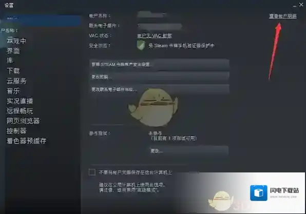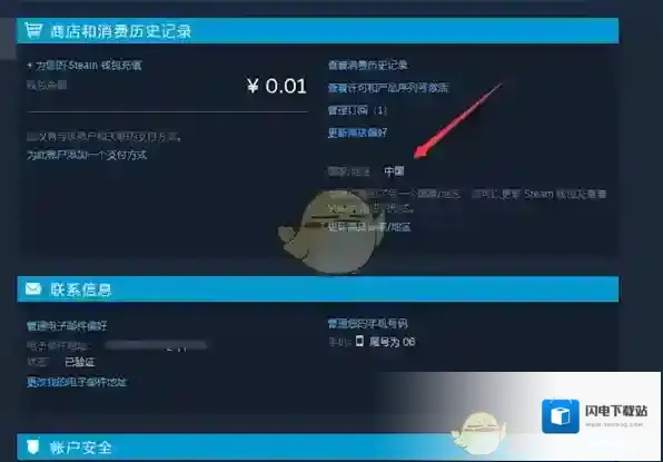 2、在设置页面中选择账户并点击账户明细进入steam账号的个人信息页面,在个人信息页面中间的位置可以查看用户自己的所在地区设置,点击变更即可开始变更自己的地区设置。Steam因为在不同的地区有不同的商品定价,所以玩家也可以在商店中通过发售游戏的货币币种来判断steam所在区域。