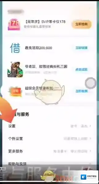 2、向上滑动我的界面至底端,点击设置与服务中的设置。