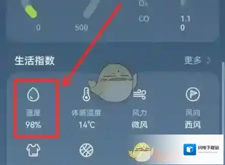 2、下拉页面找到“生活指数”选项栏,点击下面“湿度”。