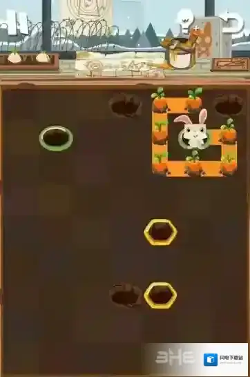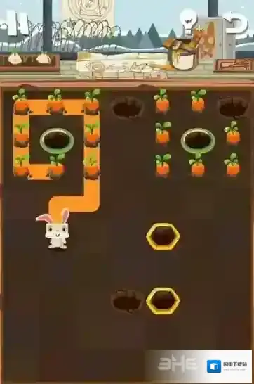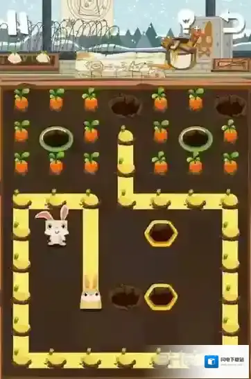 玩家先让灰兔子通过地下通道来到卷心菜中间的出口,像下图一样画一个圈圈,就可以完成了;黄兔子只有一种过关方案,就是从上方画一个像“口”字,就可以了。最后的小兔子像图中一样,画一个圈,然后进入地下通道中,再画个圈就可通关。
