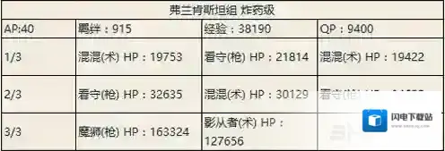 fgo夏日大逃脱弗兰肯斯坦队第1轮副本配置 弗兰肯斯坦队掉落介绍