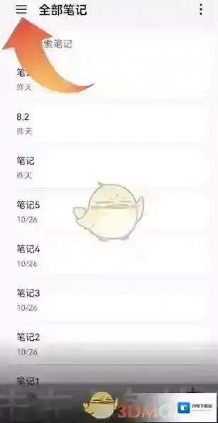 1、打开手机备忘录,接着点击左上角的三条横线;